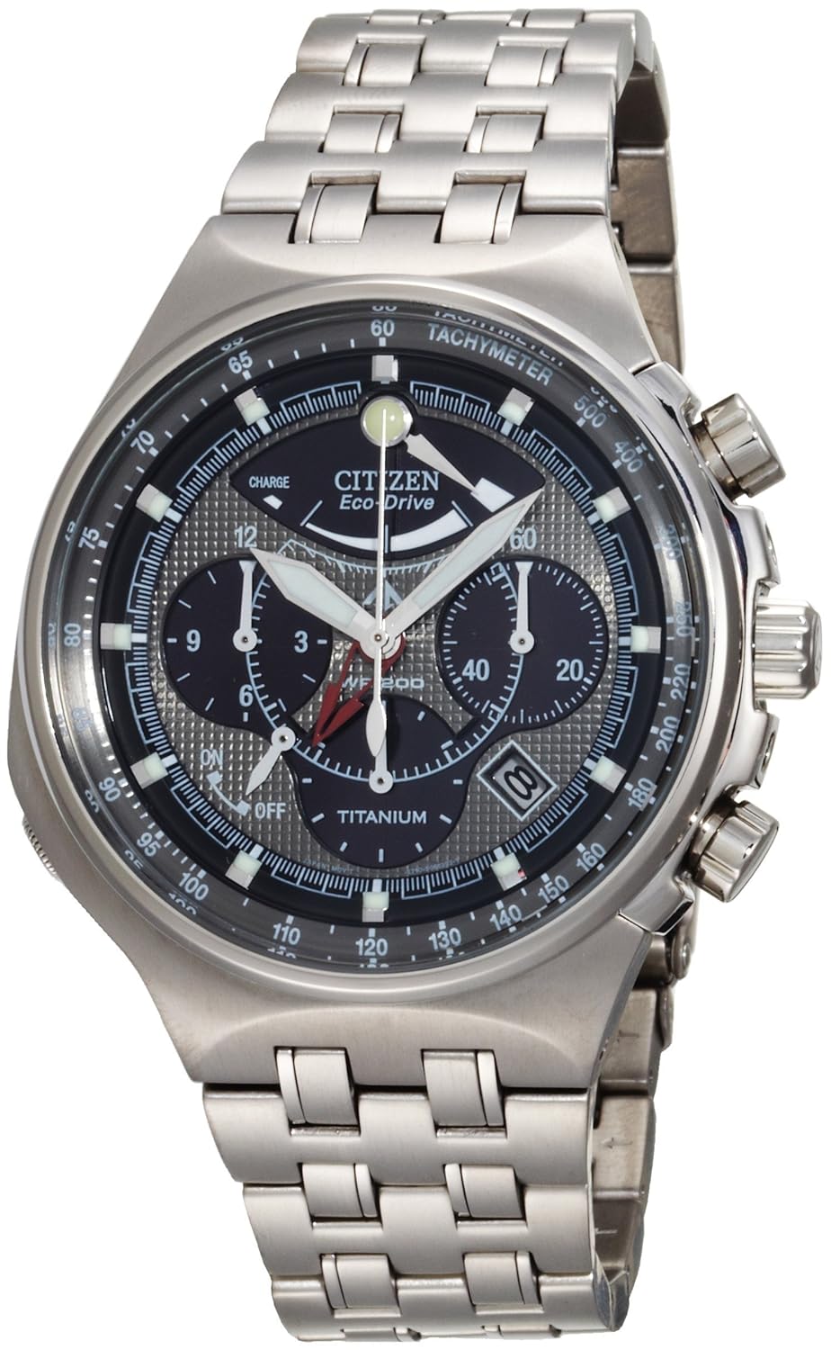 The Eco-Drive Titanium Calibre 2100 Watch is the most advanced chronograph watches made by Citizen, this Men's Eco-Drive Watch also offers stylish lines that nicely complement both business and casual couture. The chronograph timing function includes 60-minute, 12-hour, and independent second-hand subdials, as well as a center sweep 1/5-second hand. It also has a reset button that instantly returns all the chronograph registers to zero. The watch case and bracelet band links are made of titanium--which is nearly 50 percent lighter than steel, but 30 percent stronger. It's also particularly resistant to salt water corrosion, as well as hypo-allergenic--perfect for those with metal allergies.